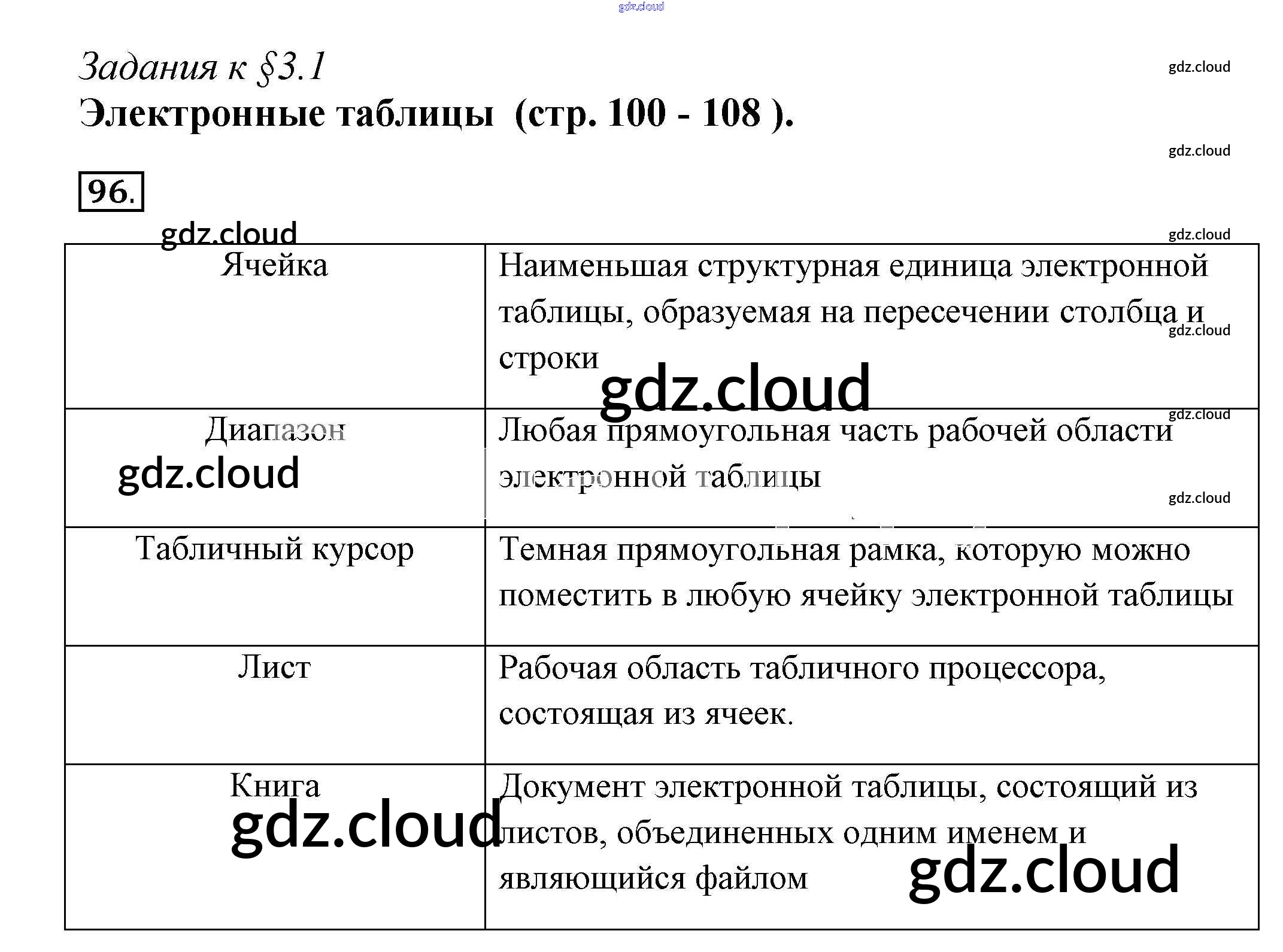 Ответ на задание 96 Рабочая тетрадь Информатика за 9 (девятый) класс Босова Базовый и углубленный уровень 2017 Часть 1, 2