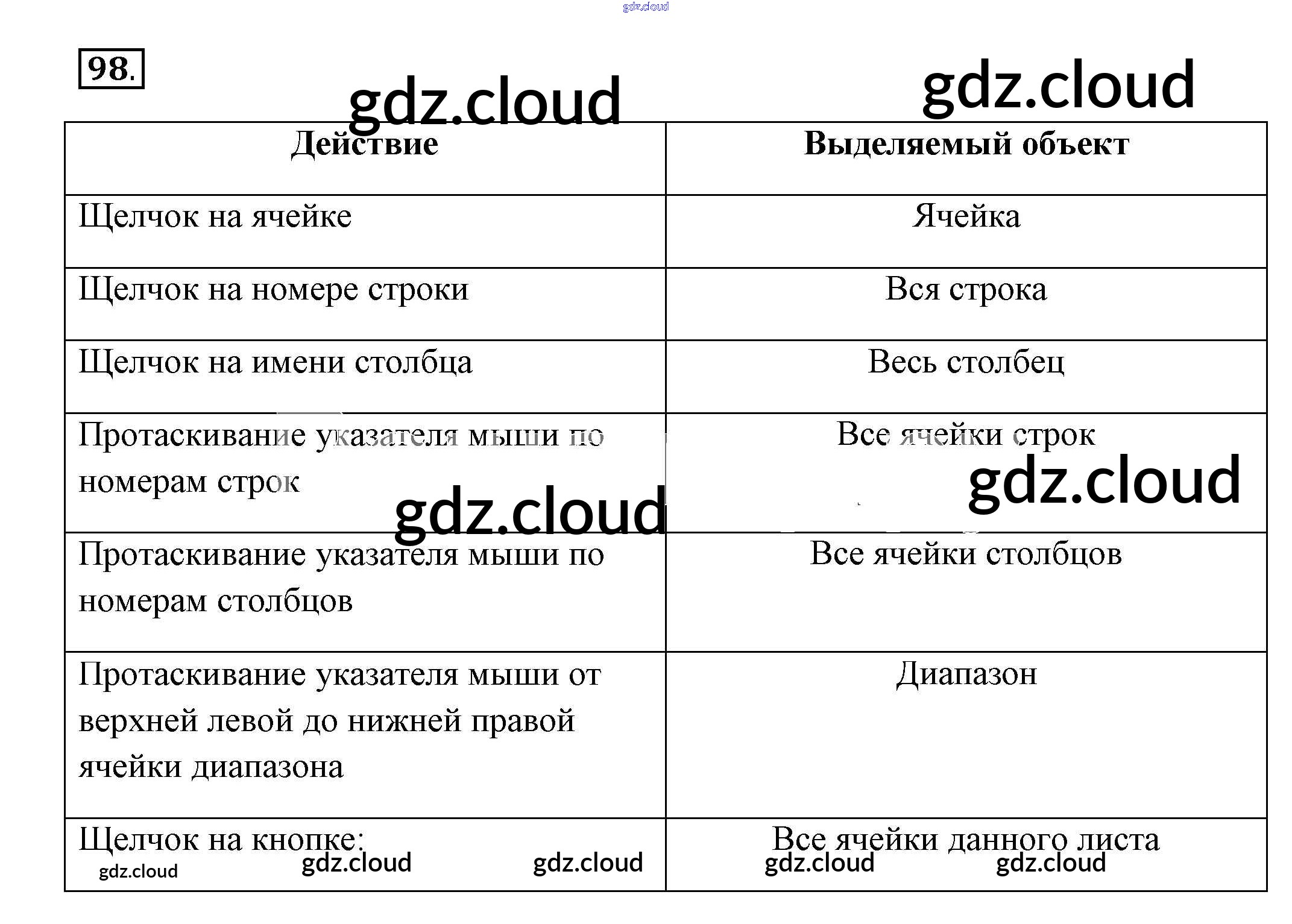 Ответ на задание 98 Рабочая тетрадь Информатика за 9 (девятый) класс Босова Базовый и углубленный уровень 2017 Часть 1, 2
