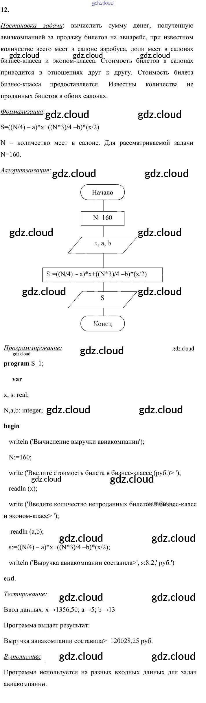 Ответ на задание 12 Учебник Информатика за 9 (девятый) класс Босова, Босова 2017 ФГОС онлайн и без номера телефона.