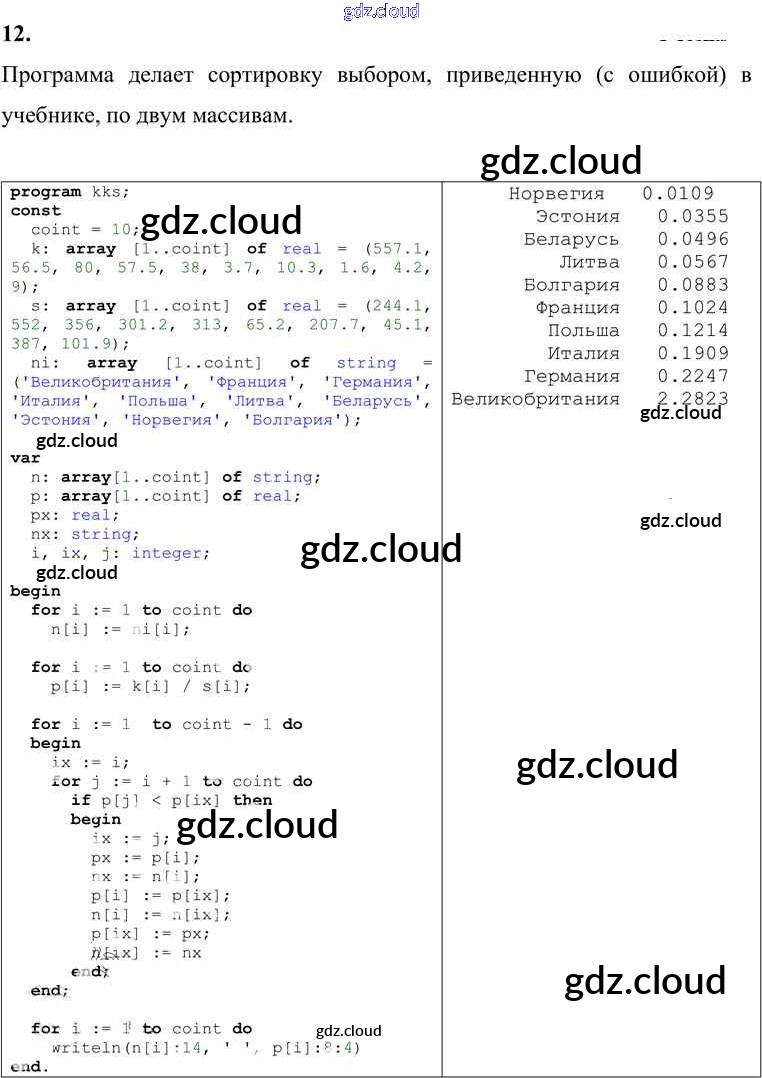 Ответ на задание 12 Учебник Информатика за 9 (девятый) класс Босова, Босова 2017 ФГОС онлайн и без номера телефона.