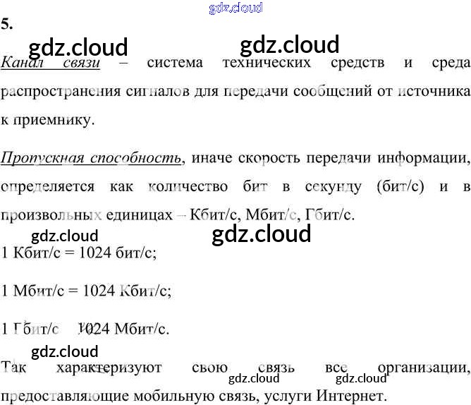 Ответ на задание 5 Учебник Информатика за 9 (девятый) класс Босова, Босова 2017 ФГОС онлайн и без номера телефона.