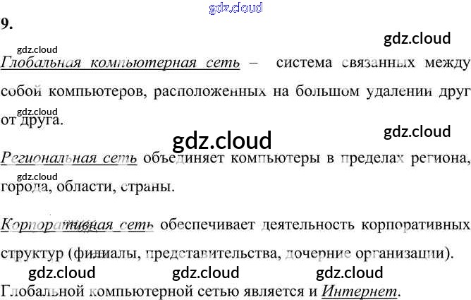 Ответ на задание 9 Учебник Информатика за 9 (девятый) класс Босова, Босова 2017 ФГОС онлайн и без номера телефона.