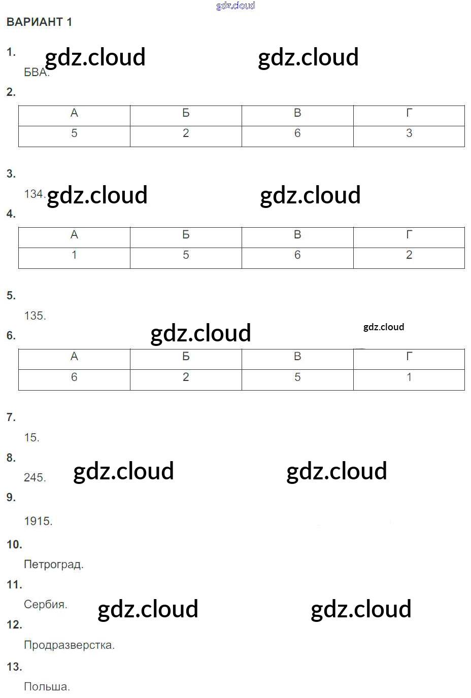 КР №1 (варианты) Ответы к Главе 1 по Истории 10 класс Контрольные работы Артасов УМК Просвещение