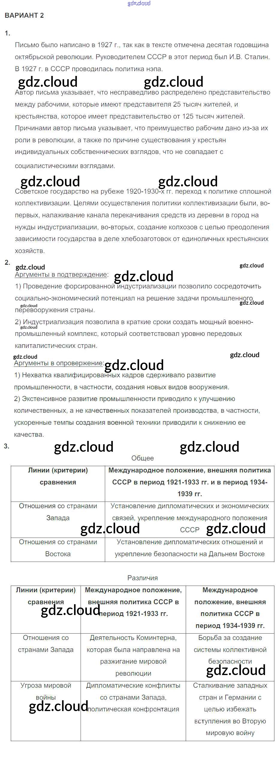 Ответ на задание 2 Контрольные работы История за 10 (десятый) класс Артасов УМК 2017 ФГОС онлайн и без номера телефона.