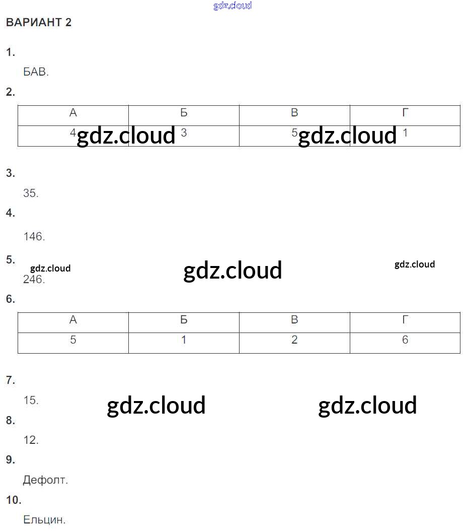 КР №1 (варианты) Ответы к Главе 5 по Истории 10 класс Контрольные работы Артасов УМК Просвещение