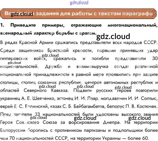 Вопросы и задания для работы с текстом параграфа Народы СССР в борьбе с фашизмом по Истории 10 класс Учебник Горинов Часть 1, 2, 3 Просвещение