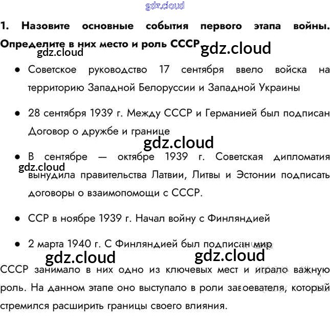 Ответ на задание 1 Учебник История за 11 (одиннадцатый) класс Загладин, Петров Инновационная школа Базовый уровень 2014