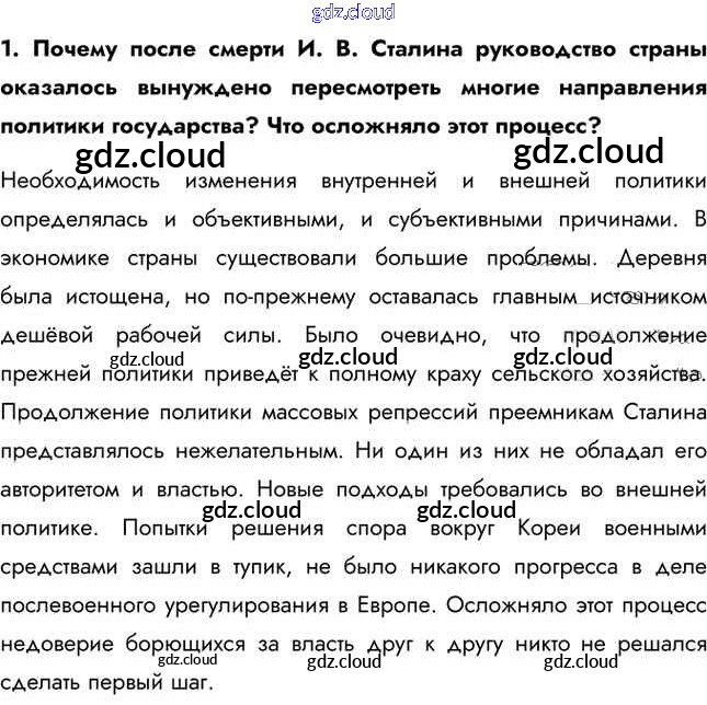 Ответ на задание 1 Учебник История за 11 (одиннадцатый) класс Загладин, Петров Инновационная школа Базовый уровень 2014