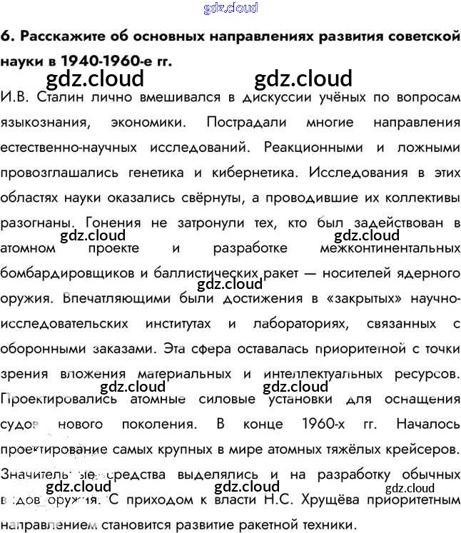 Ответ на задание 6 Учебник История за 11 (одиннадцатый) класс Загладин, Петров Инновационная школа Базовый уровень 2014