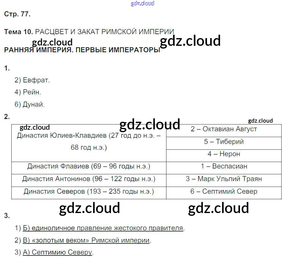 Ответы к Теме 10. Расцвет и закат Римской империи по Истории 5 класс Рабочая тетрадь Абрамов Вертикаль Дрофа