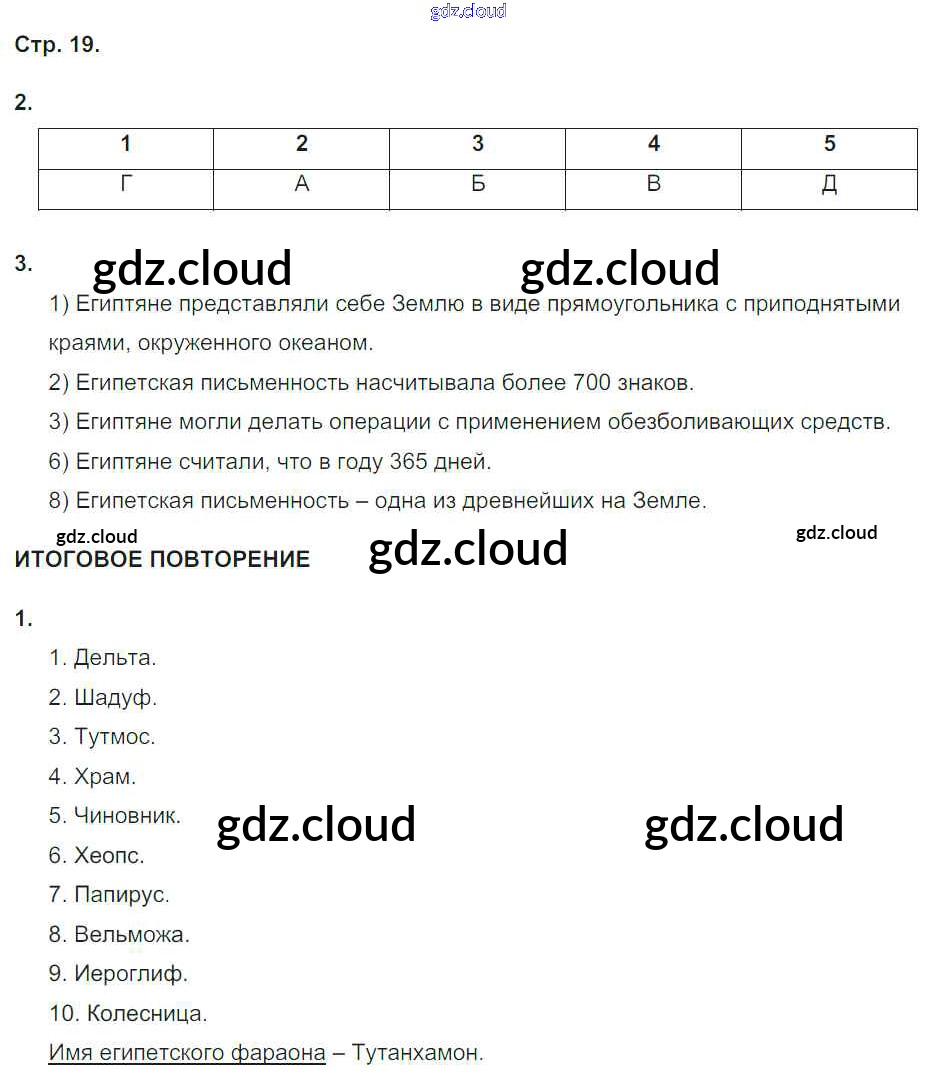 Ответы к Теме 2. Древний Египет по Истории 5 класс Рабочая тетрадь Абрамов Вертикаль Дрофа