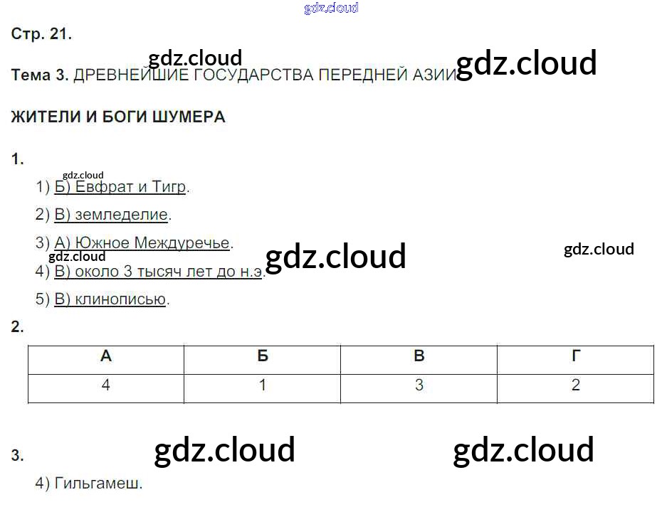 Ответы к Теме 3. Древнейшие государства передней Азии по Истории 5 класс Рабочая тетрадь Абрамов Вертикаль Дрофа