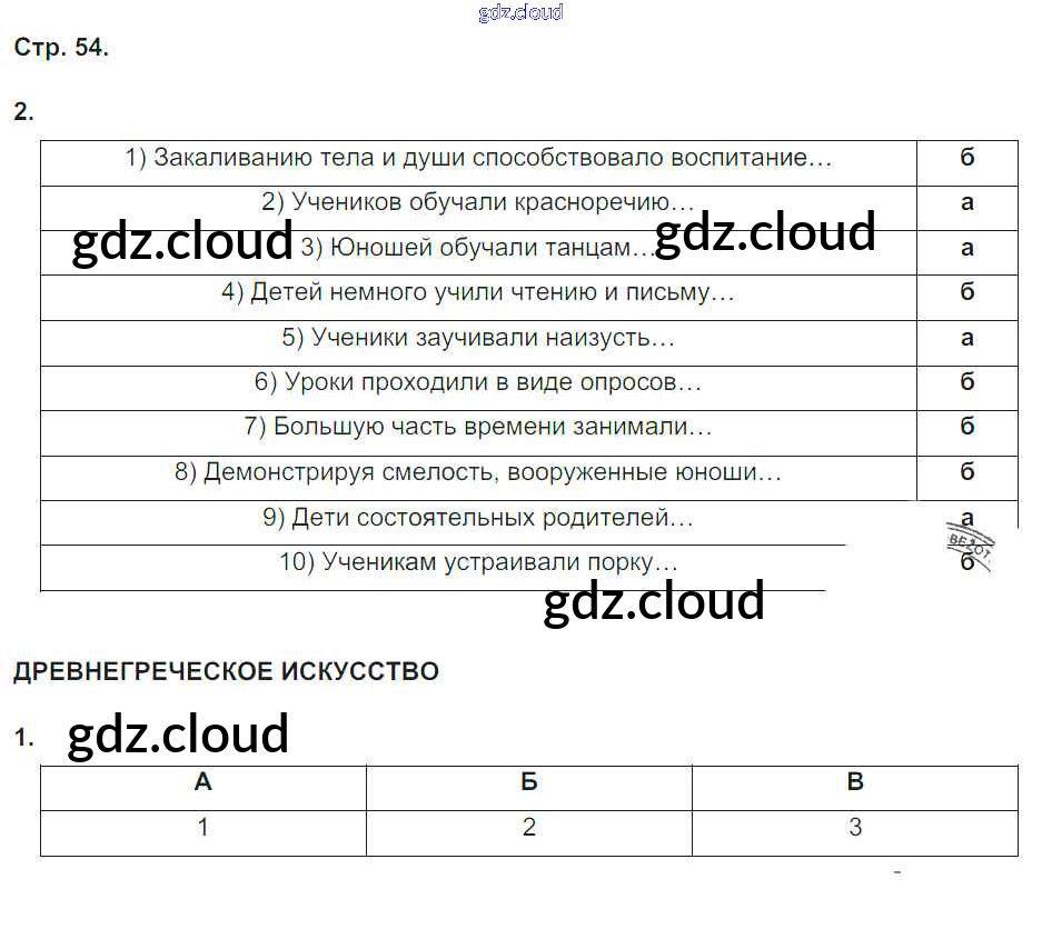 Ответ на задание стр. 54 Рабочая тетрадь История за 5 (пятый) класс Абрамов, Абрамова Вертикаль 2019