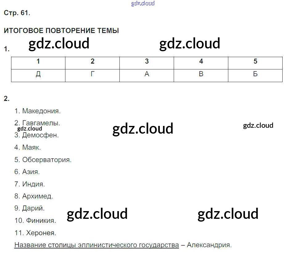 Ответ на задание стр. 61 Рабочая тетрадь История за 5 (пятый) класс Абрамов, Абрамова Вертикаль 2019