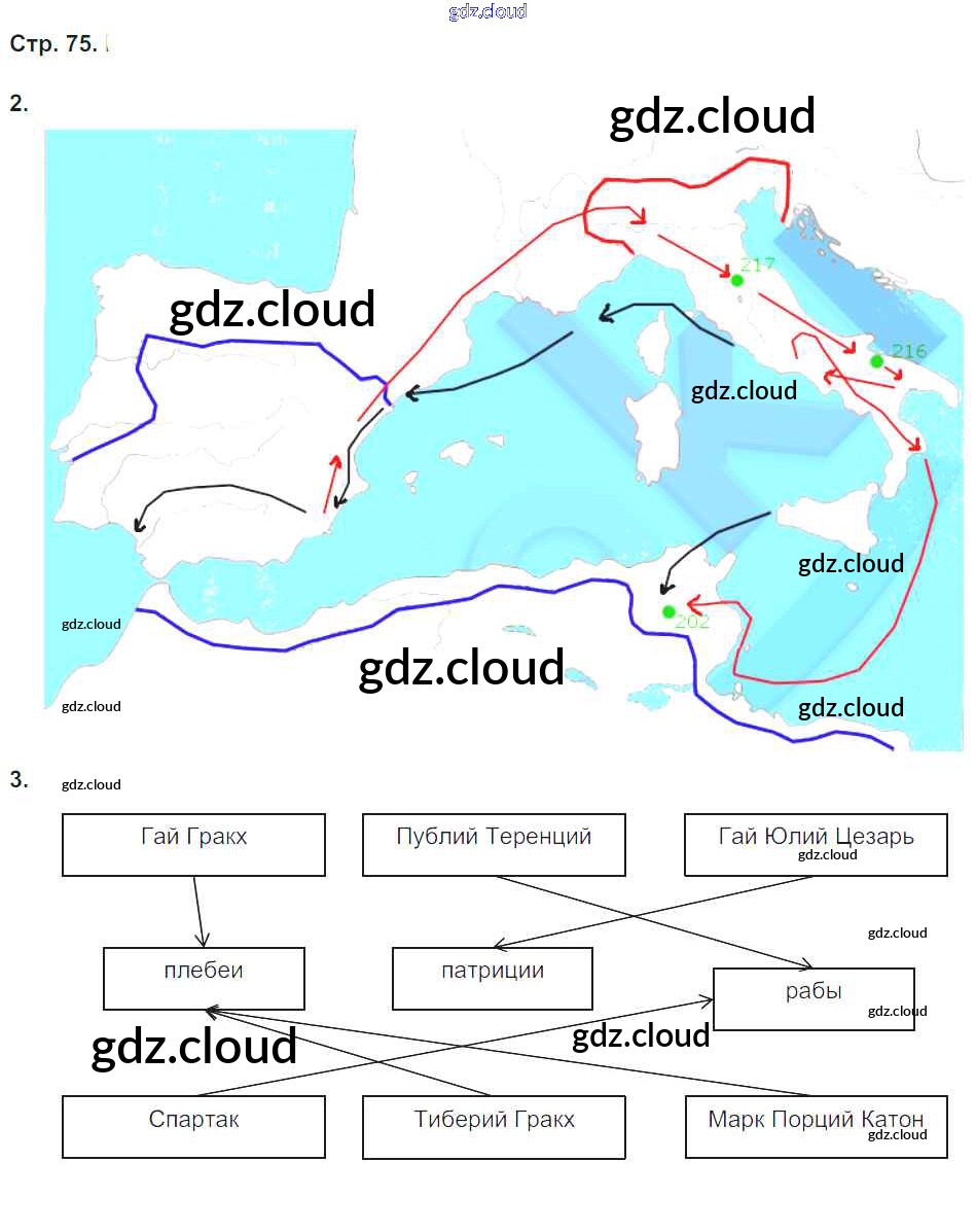 Ответ на задание стр. 75 Рабочая тетрадь История за 5 (пятый) класс Абрамов, Абрамова Вертикаль 2019
