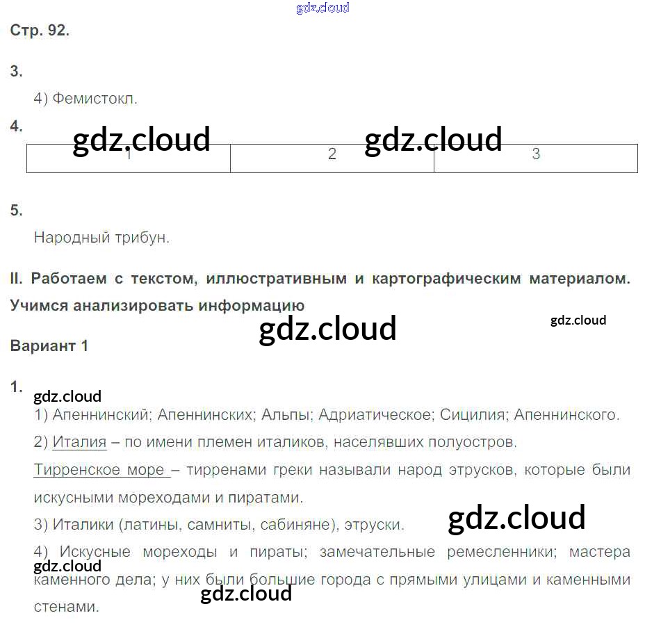 Ответ на задание 92 Рабочая тетрадь История за 5 (пятый) класс Чернова УМК 2019 ФГОС онлайн и без номера телефона.