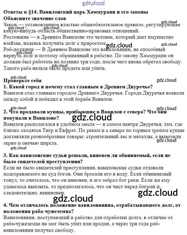 Ответ на задание §14 Учебник История за 5 (пятый) класс Вигасин, Годер, Свенцицкая 2010 ФГОС онлайн и без номера телефона.