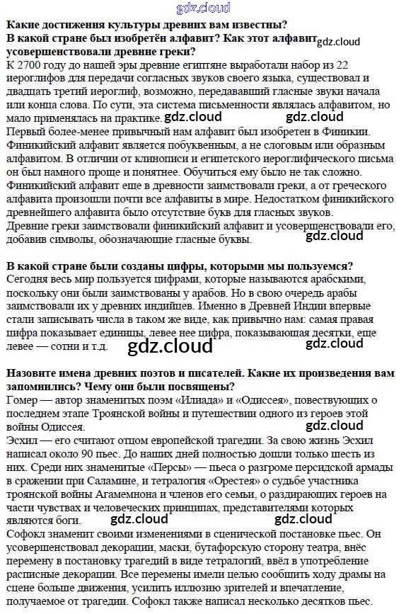 Проверка знаний Ответы к Параграфам по Истории 5 класс Учебник Вигасин Просвещение