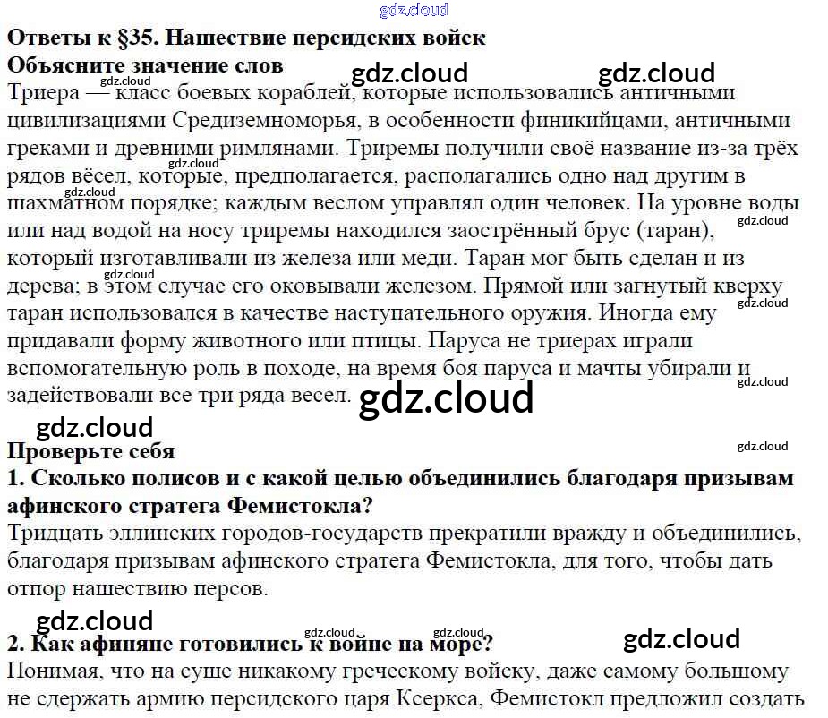 Ответ на задание §35 Учебник История за 5 (пятый) класс Вигасин, Годер, Свенцицкая 2010 ФГОС онлайн и без номера телефона.
