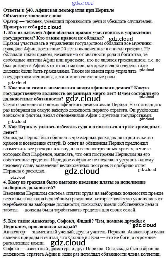Ответ на задание §40 Учебник История за 5 (пятый) класс Вигасин, Годер, Свенцицкая 2010 ФГОС онлайн и без номера телефона.