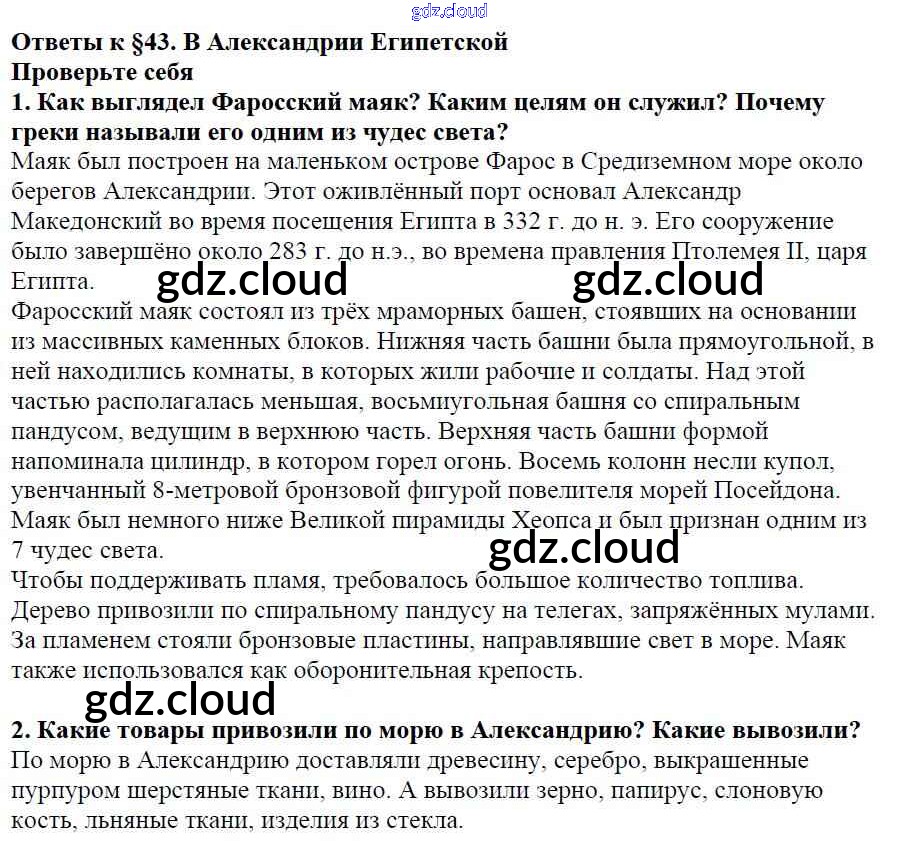 Ответ на задание §43 Учебник История за 5 (пятый) класс Вигасин, Годер, Свенцицкая 2010 ФГОС онлайн и без номера телефона.