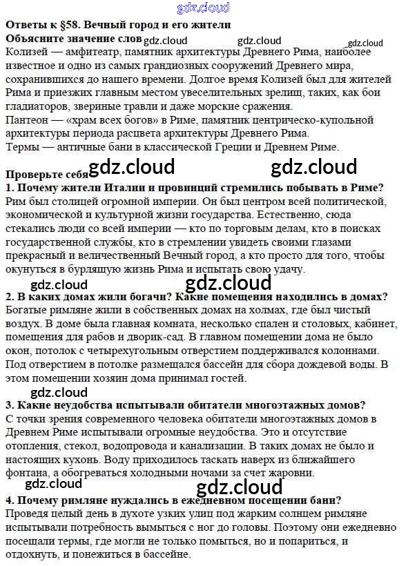 Ответ на задание §58 Учебник История за 5 (пятый) класс Вигасин, Годер, Свенцицкая 2010 ФГОС онлайн и без номера телефона.