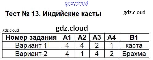 Ответ на задание Тест №13. Индийские касты Контрольно-измерительные материалы (КИМ) История за 5 (пятый) класс Волкова 2017