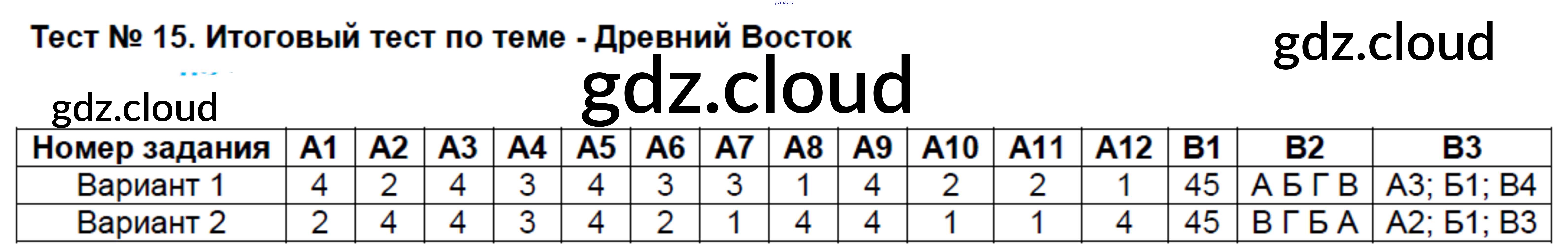 Ответ на задание Тест №15. Итоговый тест по теме - Древний Восток Контрольно-измерительные материалы (КИМ) История за 5 (пятый) класс Волкова 2017