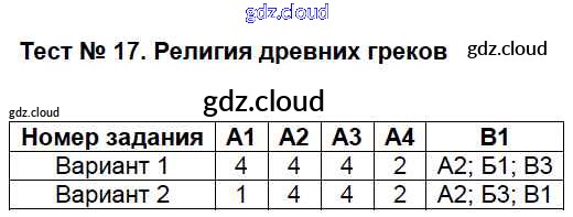 Ответ на задание Тест №17. Религия древних греков Контрольно-измерительные материалы (КИМ) История за 5 (пятый) класс Волкова 2017