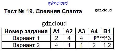 Ответ на задание Тест №19. Древняя Спарта Контрольно-измерительные материалы (КИМ) История за 5 (пятый) класс Волкова 2017