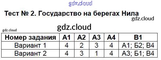 Ответ на задание Тест №2. Государство на берегах Нила Контрольно-измерительные материалы (КИМ) История за 5 (пятый) класс Волкова 2017