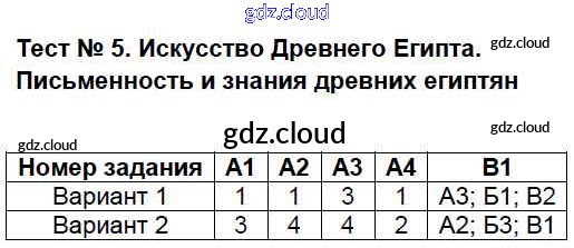 Ответ на задание Тест №5. Искусство Древнего Египта Контрольно-измерительные материалы (КИМ) История за 5 (пятый) класс Волкова 2017
