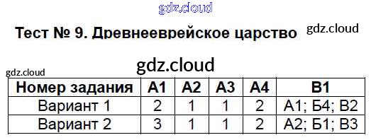 Ответ на задание Тест №9. Древнееврейское царство Контрольно-измерительные материалы (КИМ) История за 5 (пятый) класс Волкова 2017