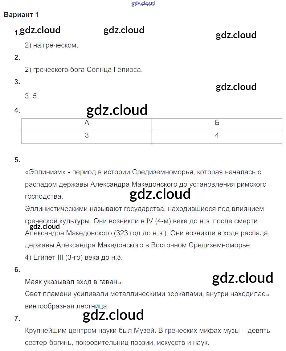 Ответ на задание Вариант №1 Проверочные и контрольные работы История за 5 (пятый) класс Крючкова 2015