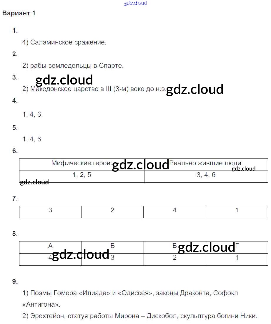 Ответ на задание Вариант №1 Проверочные и контрольные работы История за 5 (пятый) класс Крючкова 2015