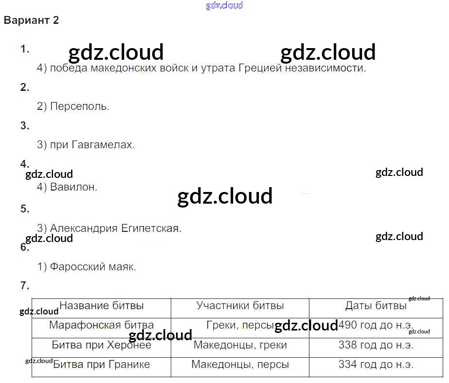 Ответ на задание Вариант №2 Проверочные и контрольные работы История за 5 (пятый) класс Крючкова 2015