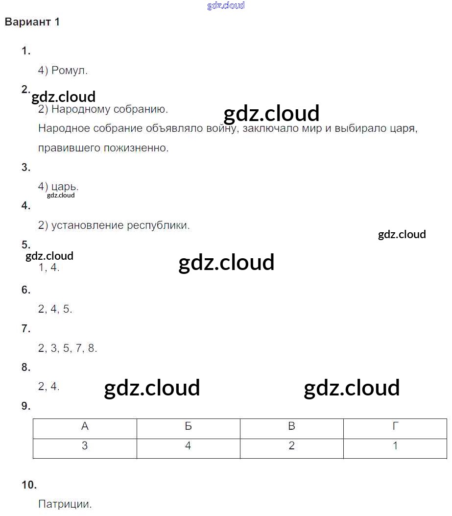 Проверочная работа-1 Ответы к Главе-11. Рим: от его возникновения до установления господства над Италией по Истории 5 класс Проверочные и контрольные работы Крючкова Просвещение