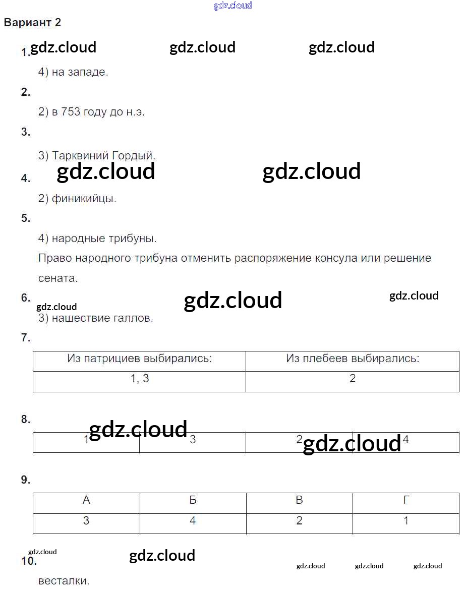 Ответ на задание Вариант №2 Проверочные и контрольные работы История за 5 (пятый) класс Крючкова 2015