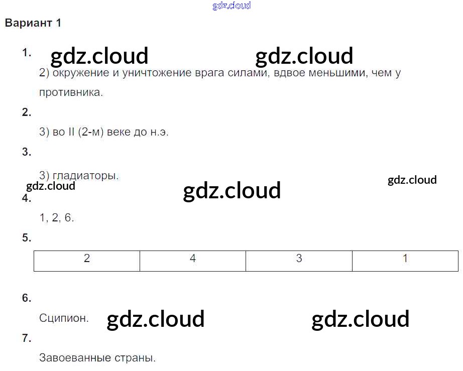Ответ на задание Вариант №1 Проверочные и контрольные работы История за 5 (пятый) класс Крючкова 2015