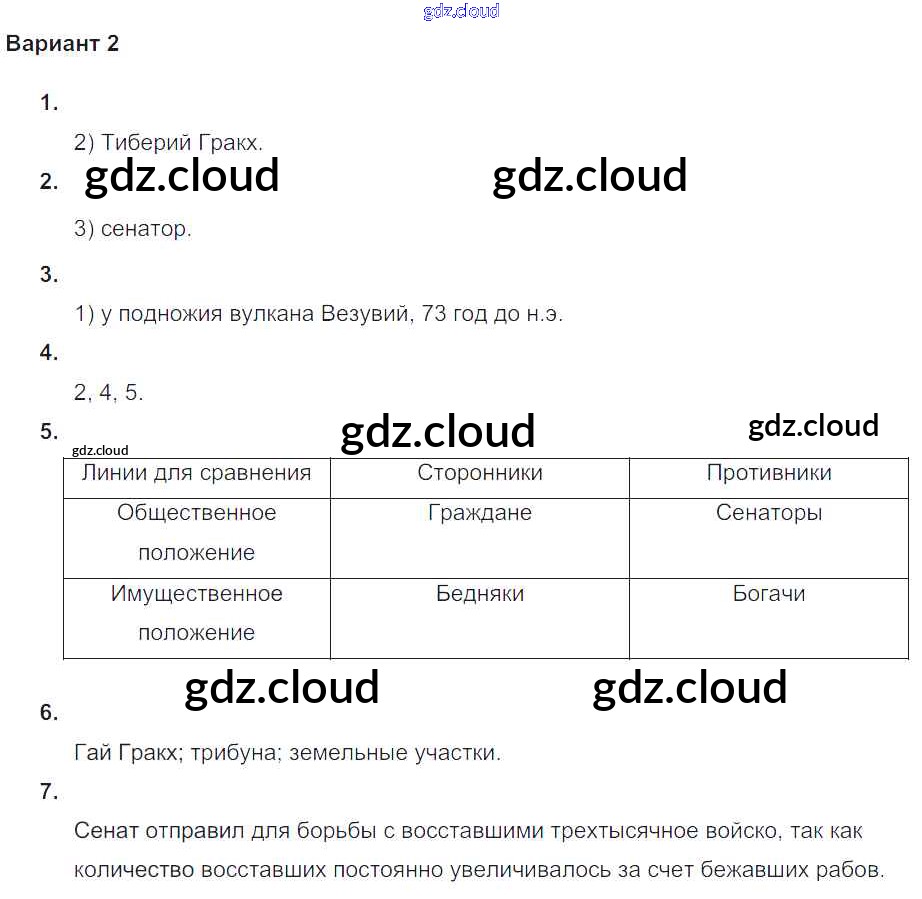 Ответ на задание Вариант №2 Проверочные и контрольные работы История за 5 (пятый) класс Крючкова 2015