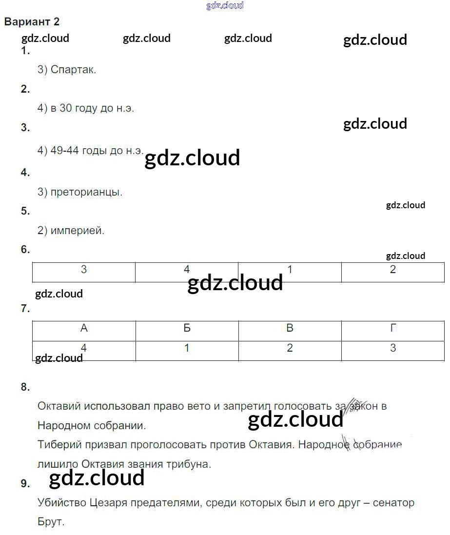 Ответ на задание Вариант №2 Проверочные и контрольные работы История за 5 (пятый) класс Крючкова 2015