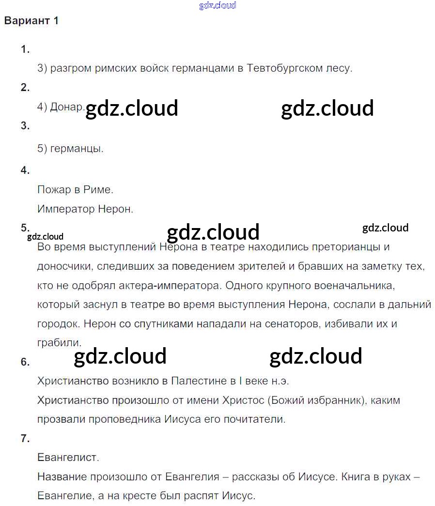 Ответ на задание Вариант №1 Проверочные и контрольные работы История за 5 (пятый) класс Крючкова 2015
