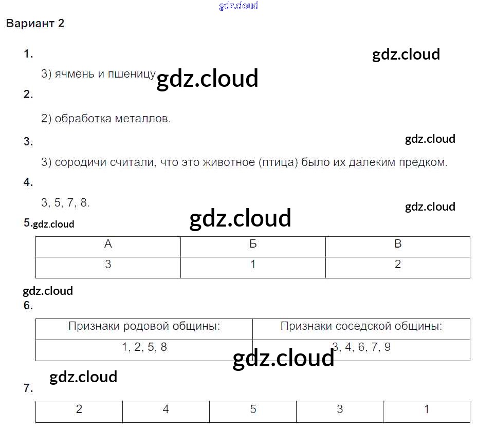Ответ на задание Вариант №2 Проверочные и контрольные работы История за 5 (пятый) класс Крючкова 2015