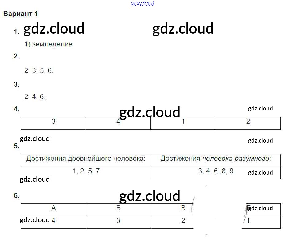 Ответ на задание Вариант №1 Проверочные и контрольные работы История за 5 (пятый) класс Крючкова 2015