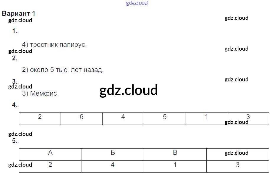 Проверочная работа-1 Ответы к Главе-4. Древний Египет по Истории 5 класс Проверочные и контрольные работы Крючкова Просвещение
