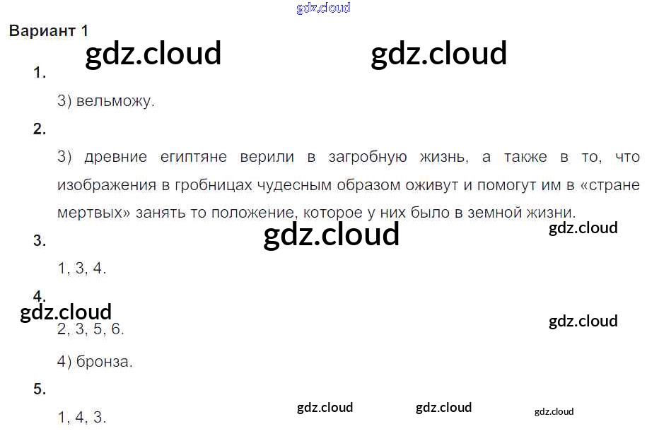 Ответ на задание Вариант №1 Проверочные и контрольные работы История за 5 (пятый) класс Крючкова 2015