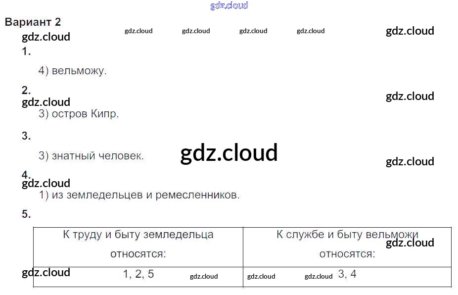 Ответ на задание Вариант №2 Проверочные и контрольные работы История за 5 (пятый) класс Крючкова 2015
