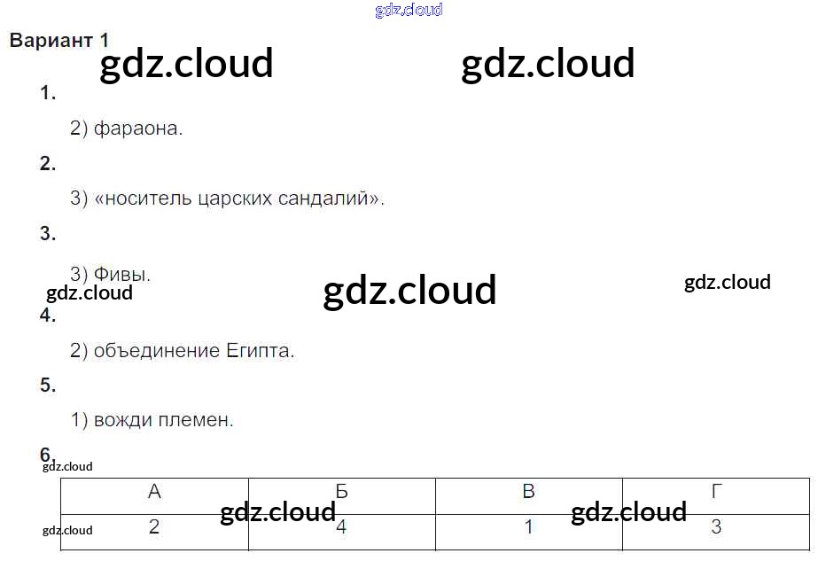 Ответ на задание Вариант №1 Проверочные и контрольные работы История за 5 (пятый) класс Крючкова 2015