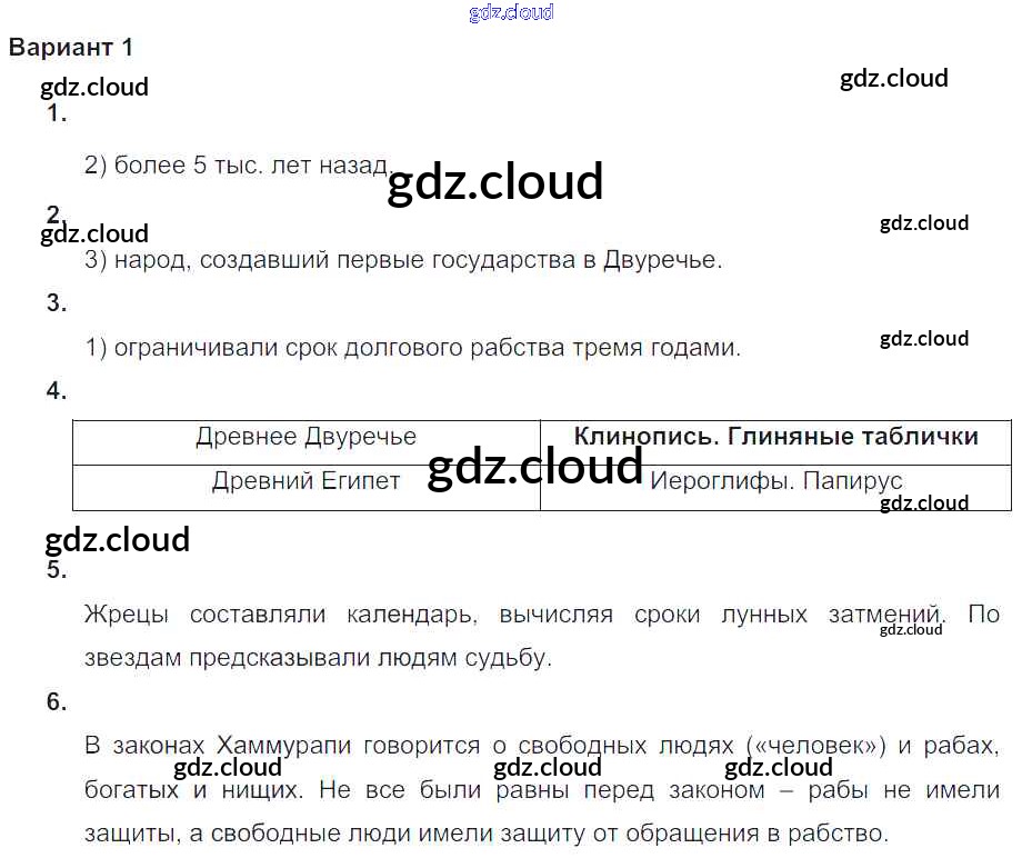 Проверочная работа-1 Ответы к Главе-5. Западная Азия в древности по Истории 5 класс Проверочные и контрольные работы Крючкова Просвещение