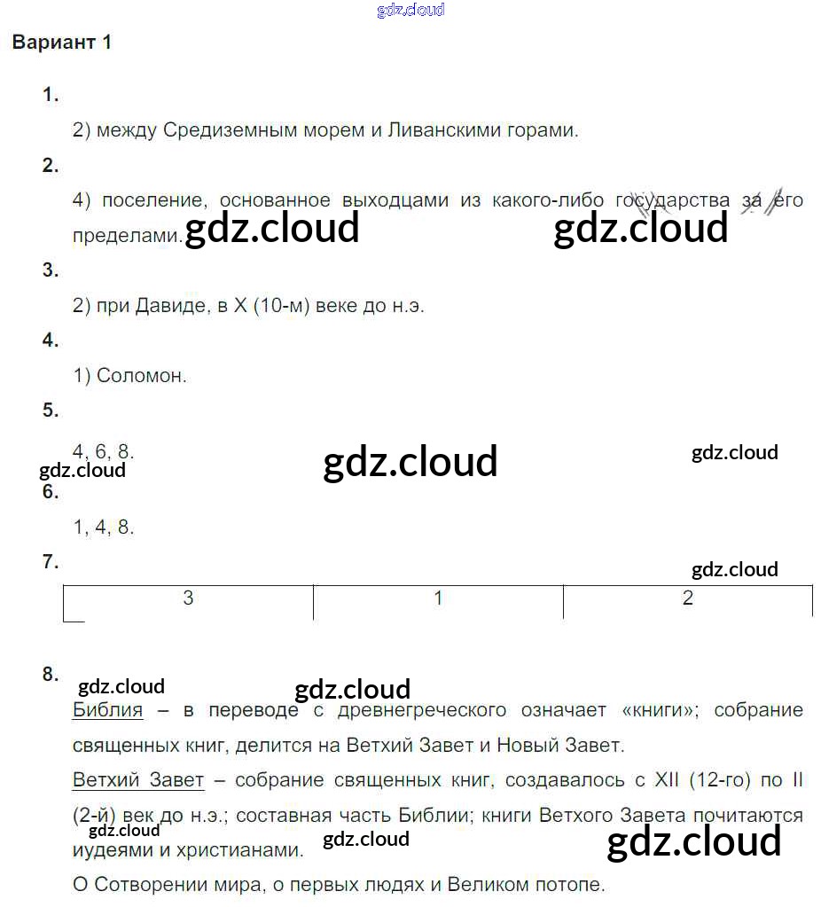 Ответ на задание Вариант №1 Проверочные и контрольные работы История за 5 (пятый) класс Крючкова 2015
